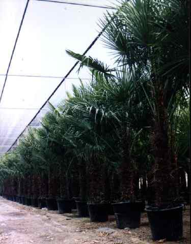 Es una Palmacea conocida como Palmera excelsa, originaria de China Japón e Himalaya. Alcanza de 4 a 10 m. de altura y de 2 a 3 m. de diámetro. Su copa es de forma palmiforme y tiene el haz verde oscuro y el envés verde azulado.