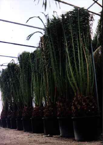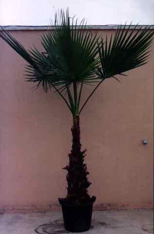 Es una Palmacea conocida como Palmera de abanico del desierto, originaria de California y Arizona. Alcanza de 15 a 20 m. de altura y de 6 a 10 m. de diámetro. Su copa es de color verde gris y de forma palmiforme, de abanico o de parasol.Washingtonia robusta